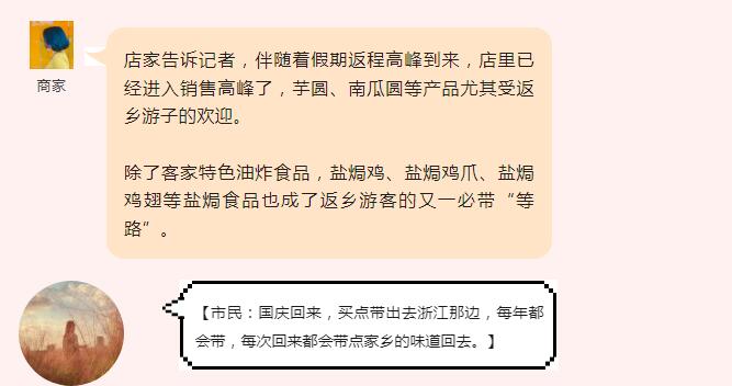 今天是“雙節”假期的最后一天,回梅過(guò)節的游子又將踏上返程;而各式各樣的伴手禮就成了必不可少的點(diǎn)綴。游子們紛紛開(kāi)始購買(mǎi)土特產(chǎn),或贈送給親朋好友,或慰藉鄉愁,帶上家鄉的味道告別家鄉。